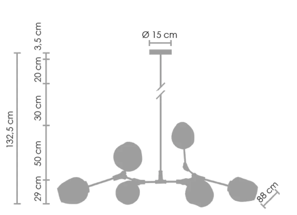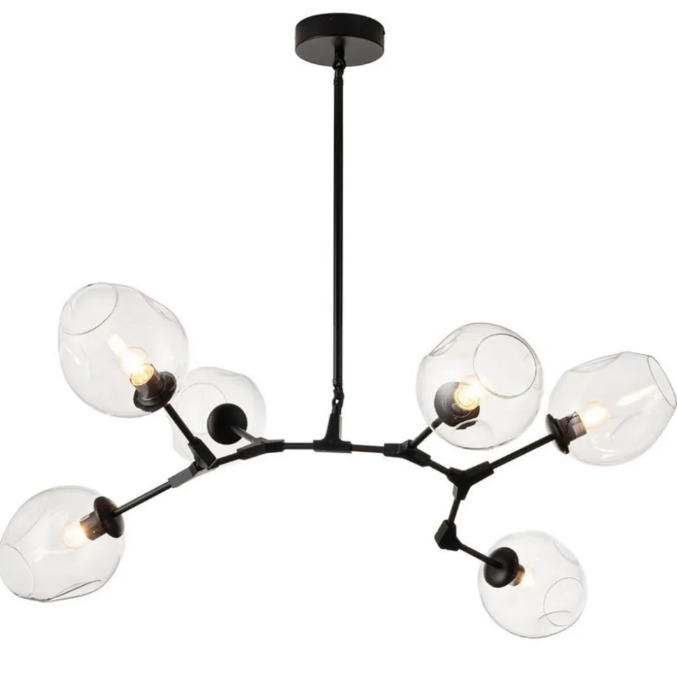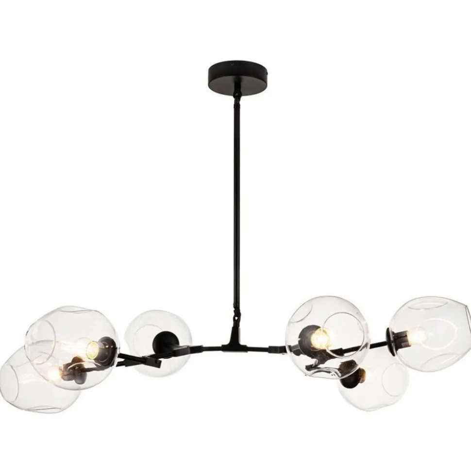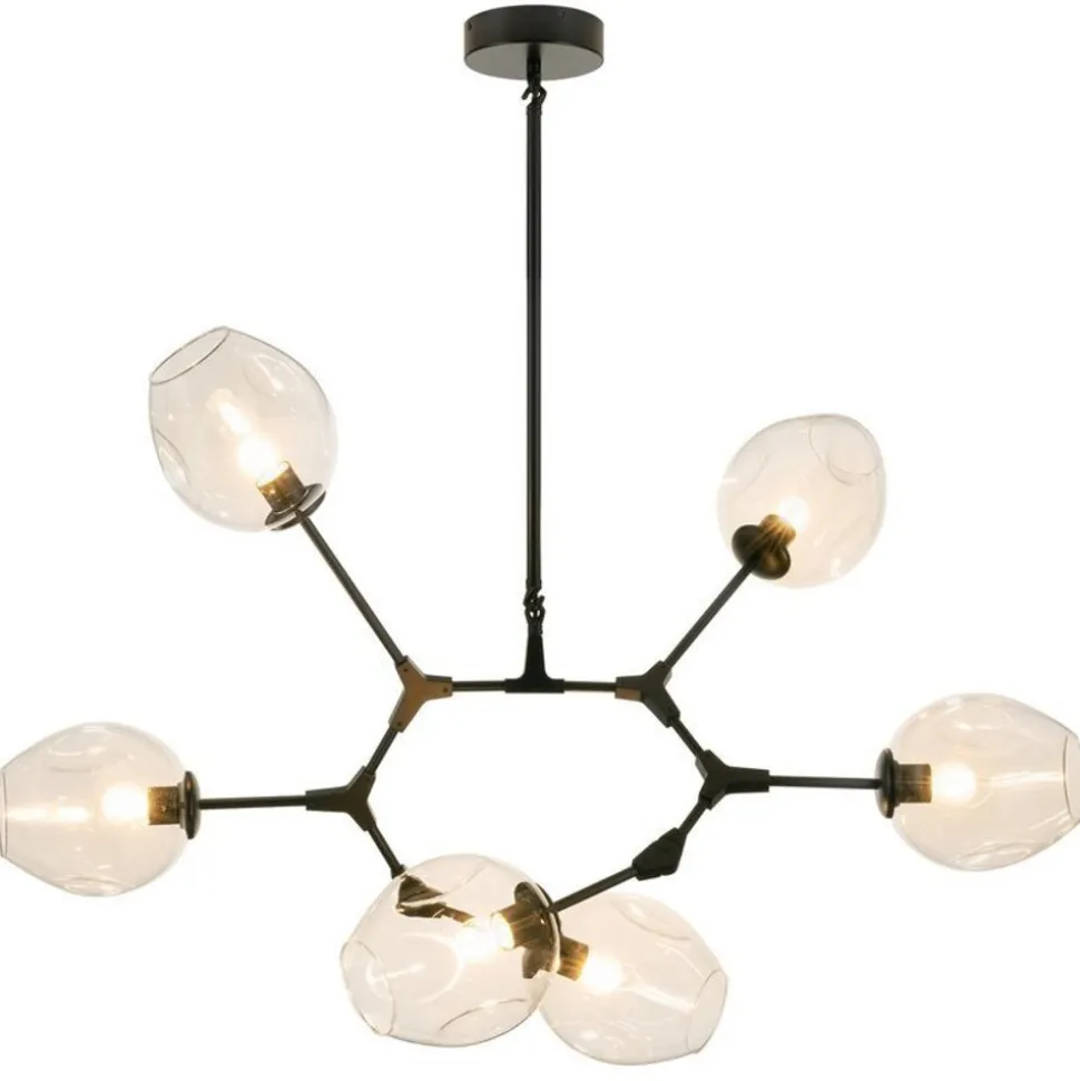 Ta oryginalna konstrukcja o sześciu szklanych, transparentnych kloszach, pozwala osiągać niebanalne aranżacje, dając rozproszone światło w efektowny sposób.