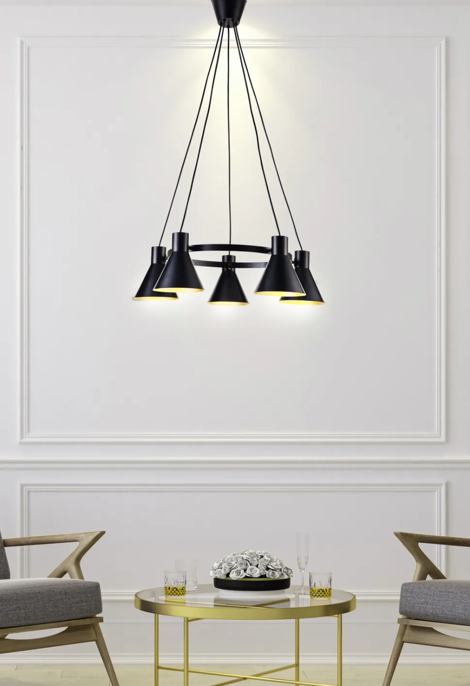 Lampa wisząca More zachwyca swoją kolorystyką. Czarna, matowa oprawa w połączeniu ze złotym wnętrzem klosza tworzy wyjątkowo stylowy duet. Lampa wykonana jest z metalu, co gwarantuje jej trwałość i odporność na uszkodzenia. Metalowe klosze są łatwe do utrzymania w czystości, co jest dodatkowym atutem.