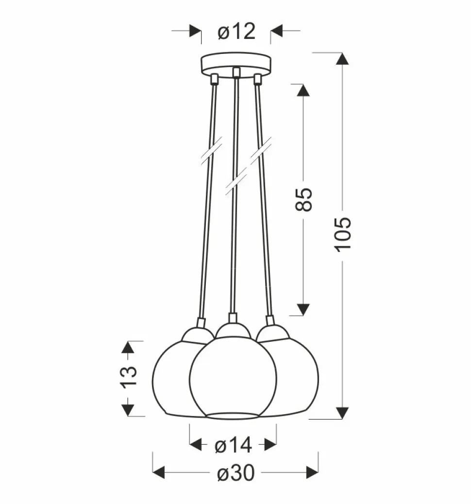 - Możliwość regulacji natężenia światła dzięki zastosowaniu trzech oprawek E27.