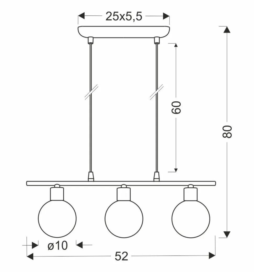 - Trzy klosze w kształcie kuli, wykonane z białego szkła, które rozprasza światło.