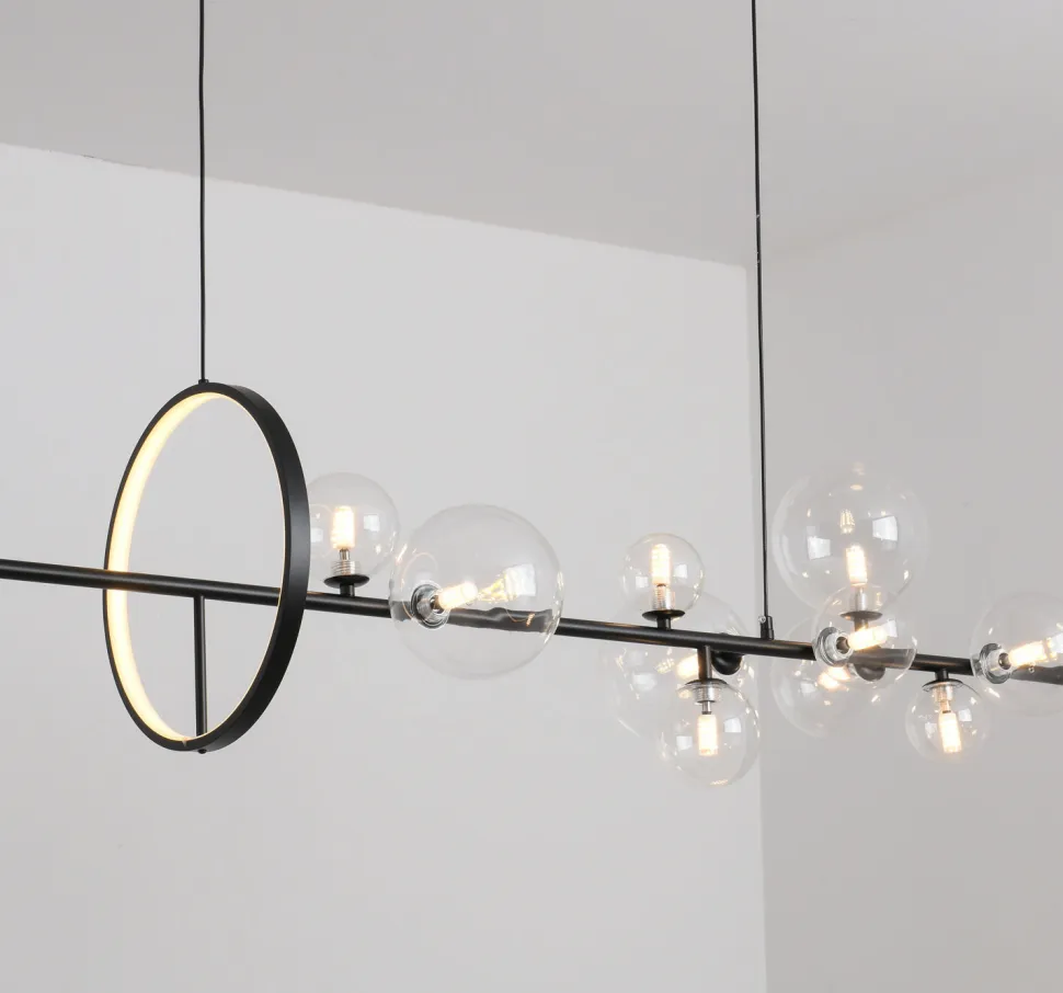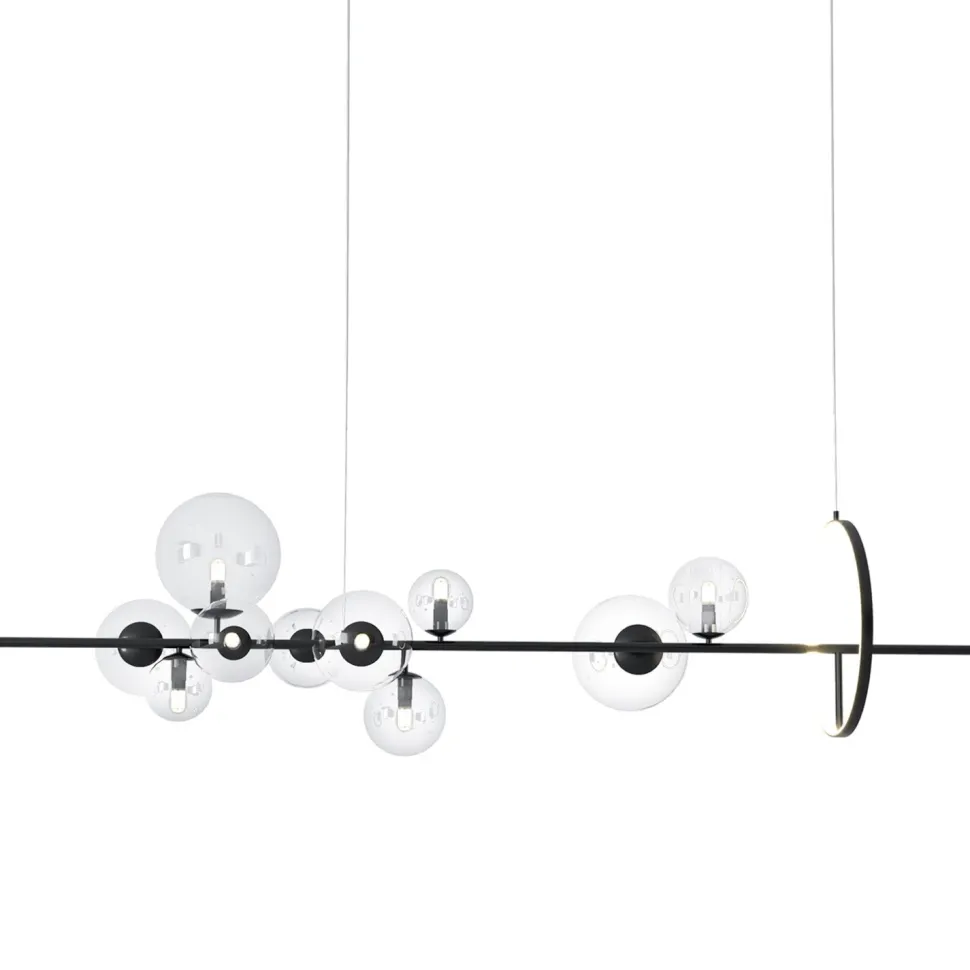Dekoracyjna lampa wisząca ORION LONG zwieńczona jest dziesięcioma szklanymi kulami o różnej wielkości.