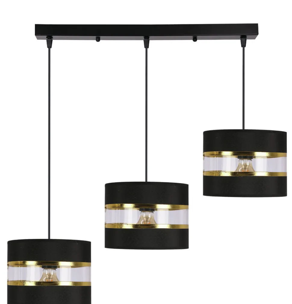 Styl nowoczesny i glamour to doskonałe połączenie, które sprawia, że lampa wisząca PANDY jest nie tylko praktyczna, ale również bardzo stylowa. Eleganckie czarne abażury z dodatkiem złota dodają lampie wyrafinowanego charakteru, a trzy oprawki E27 (max 40W) zapewniają odpowiednie oświetlenie każdego pomieszczenia.