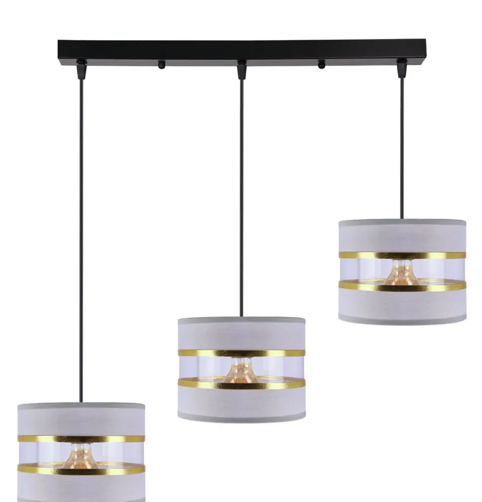 Zadbaj o wyjątkowy klimat swojego wnętrza z lampą wiszącą PANDY. Ta nowoczesna lampa wyróżnia się swoją elegancką czarną konstrukcją oraz unikalnymi abażurami w odcieniach szarości i złota. Dzięki nim światło jest rozpraszane w sposób, który tworzy przytulną i wyrafinowaną atmosferę. Lampa PANDY, wyposażona w trzy oprawki E27 (max 40W), jest doskonałym dodatkiem do salonu, jadalni czy sypialni.