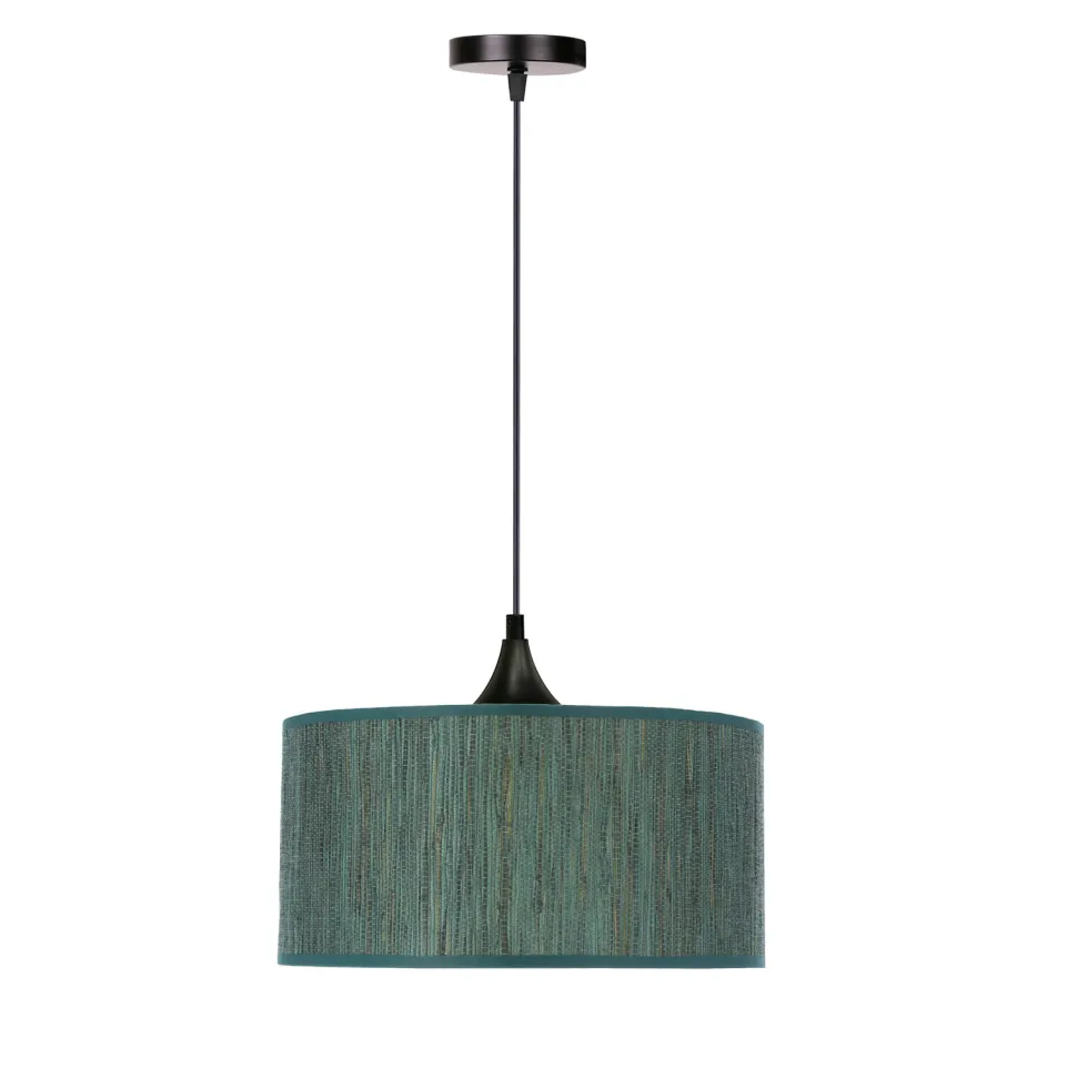 Stylowa lampa wisząca Patti to wyjątkowy element dekoracyjny, który doda każdemu wnętrzu niepowtarzalnego charakteru. Jej czarna oprawka z jednym miejscem na żarówkę E27 (max 60W) i abażur w kształcie walca (30×15 cm), wykonany z zielonej plecionki, sprawiają, że lampa Patti idealnie wpasuje się zarówno w klasyczne, jak i nowoczesne aranżacje. Ta lampa nie tylko oświetli Twoje pomieszczenie, ale również stanie się jego piękną ozdobą.