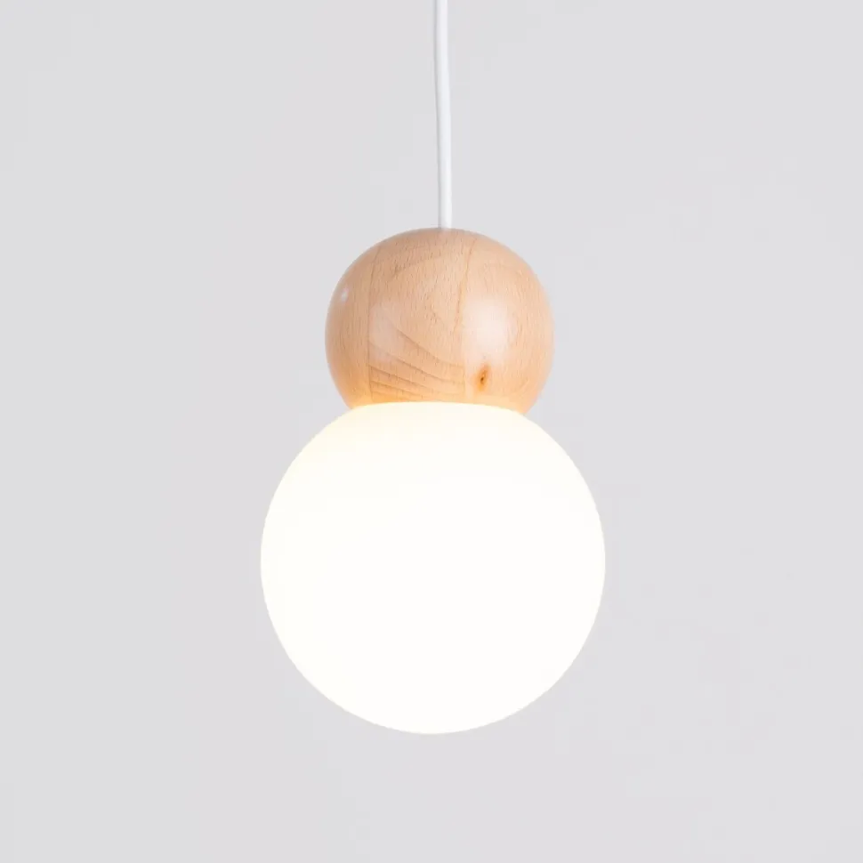 - Wykonana z mlecznego szkła i naturalnego drewna, dostępna w wersji pojedynczej i potrójnej.