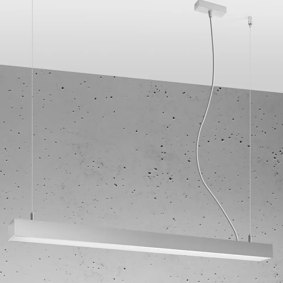 Lampa wisząca zaprojektowana jest w formie podłużnej belki. Metalowy klosz dostępny jest w trzech kolorach: białym, czarnym i szarym. Do wyboru pozostaje również długość lampy spośród trzech rozmiarów: 67, 90, 117 i 150 cm. W zestawie do dołączona jest również żarówka. W kolekcji Pinne dostępne są nie tylko lampy wiszące, ale również plafony i kinkiety, przez co łatwo będzie znaleźć pasujące dodatkowe źródła światła w razie gdyby ta lampa nie była jedynym oświetleniem przestrzeni.