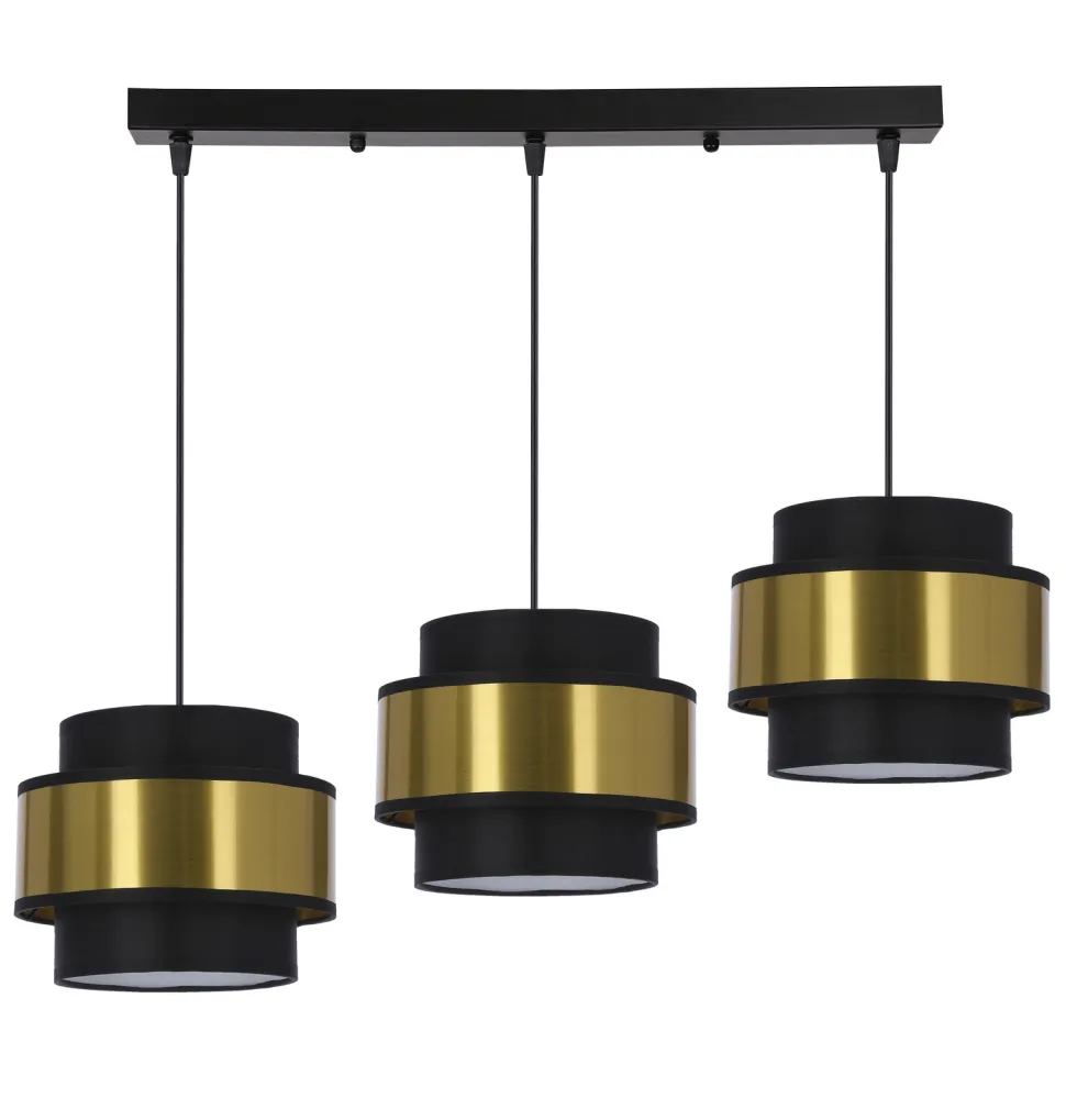 Marka Candellux Lighting to gwarancja jakości i niepowtarzalnego stylu. Lampa wisząca Prestige to połączenie elegancji i nowoczesności. Czarne abażury z subtelnym złotym pasem dodadzą charakteru każdemu wnętrzu, a trzy oprawki żarówek E27 (do 40W) zapewnią odpowiednie oświetlenie. Lampa nie zawiera żarówek w komplecie.