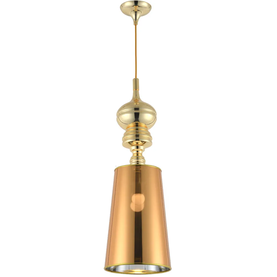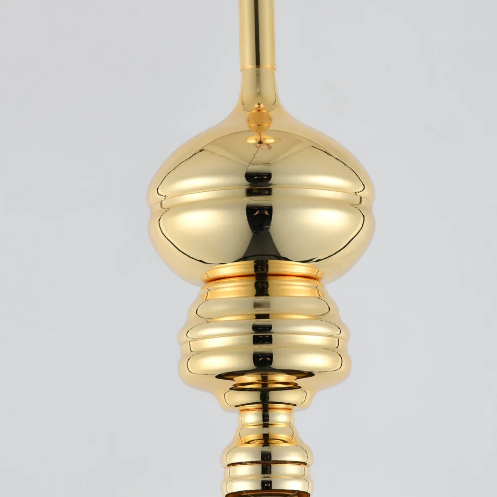 Lampa QUEEN wyposażona jest w złoty przewód PVC o długości 2 m oraz podsufitkę z metalu w kolorze złotym.