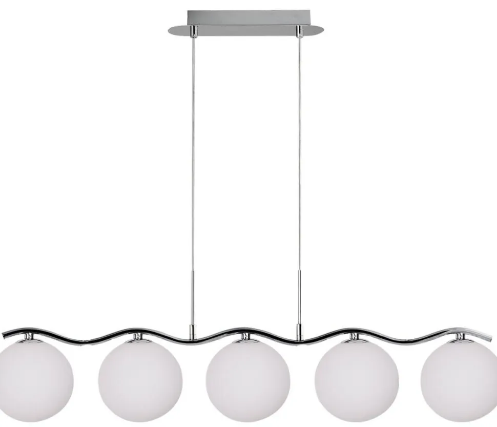 Lampa Ramon wyróżnia się nowoczesnym stylem, który idealnie wpasuje się w każde wnętrze. Jej biały klosz z chromowanym wykończeniem nadaje eleganckiego wyglądu, a pięć żarówek o mocy 40W każda, zapewnia optymalne oświetlenie pomieszczenia. Lampa jest nie tylko praktyczna, ale także pełni funkcje dekoracyjne, dodając uroku każdemu wnętrzu.