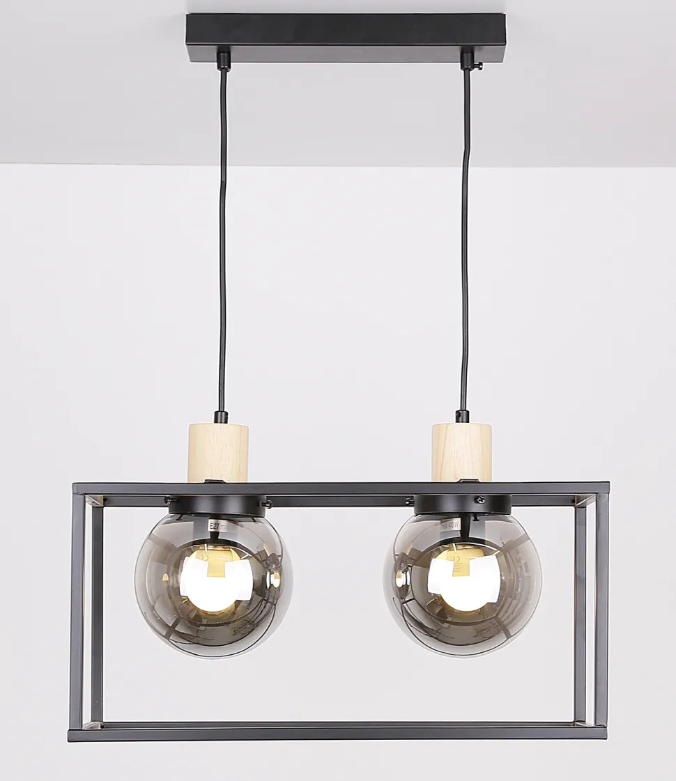 Lampa wisząca Retro 2 czarny 2x40W E27 klosz dymiony