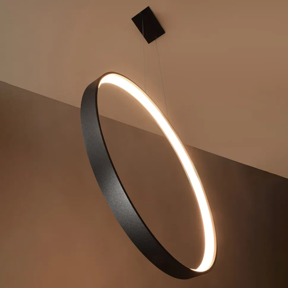 Lampa wisząca Rio posiada nietuzinkowy i alternatywny projekt. Stalowa lampa stworzona jest w kształcie okręgu, który wisi pionowo na niewidocznych linkach. Materiał wykonania przedmiotu jest bardzo wytrzymały i wysoko jakościowy, przez co zapewnia bezpieczeństwo i przyjemność użytkowania. Rio dostępne jest w dwóch ponadczasowych kolorach: białym i czarnym. Przez swoją ażurową i lekką formę, lampa staje się idealnym dodatkiem do wielu wnętrz. Pasować będzie zarówno do domowego salonu lub jadalni, lecz także do hotelu, restauracji czy sklepu. Pięknie pasować będzie również do stylowego biura.