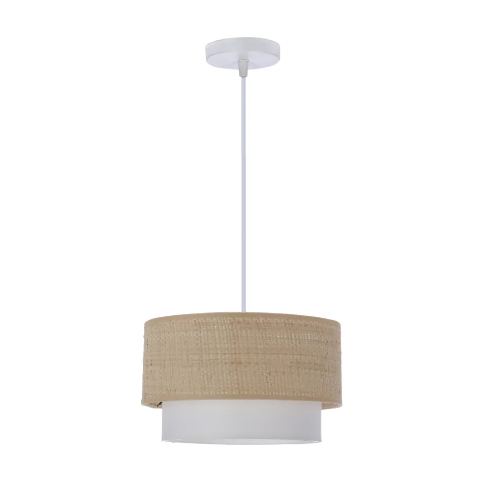 Poszukujesz oświetlenia, które doda Twoim wnętrzom niepowtarzalnego uroku? Lampa wisząca Ritana to produkt stworzony dla Ciebie. Biała oprawa lampy w połączeniu z beżowym abażurem tworzy niezwykle stylowy i elegancki dodatek do każdego pomieszczenia. Zastosowanie jednego źródła światła o mocy 60W pozwala na uzyskanie przytulnej atmosfery i ciepłego światła. Jest to idealne rozwiązanie dla salonu, jadalni czy sypialni.