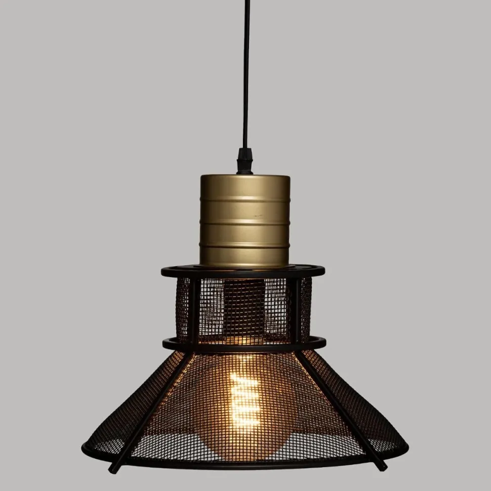 Prezentowana lampa wisząca Rodo czarna od Atmosphera to wyjątkowy dodatek do każdego wnętrza. Jej industrialny abażur wykonany z metalowej siatki oraz złota podstawa dodadzą eleganckiego kontrastu do każdego pomieszczenia. Drobna siateczka nie tylko zwiększa estetykę lampy, ale również delikatnie łagodzi blask żarówki, tworząc przytulną atmosferę.