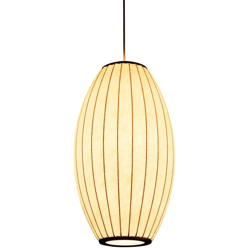 Prezentowana lampa wisząca SILK BARREL o długości 60 cm to połączenie nowoczesności i elegancji. Jej klosz, wykonany z jedwabiu, ma wydłużoną formę przypominającą wrzeciono, które subtelnie rozprasza światło. Srebrne metalowe detale dodają lampie nowoczesnego wyglądu, dzięki czemu doskonale wpasuje się w klasyczne, minimalistyczne, ale również eklektyczne wnętrza.