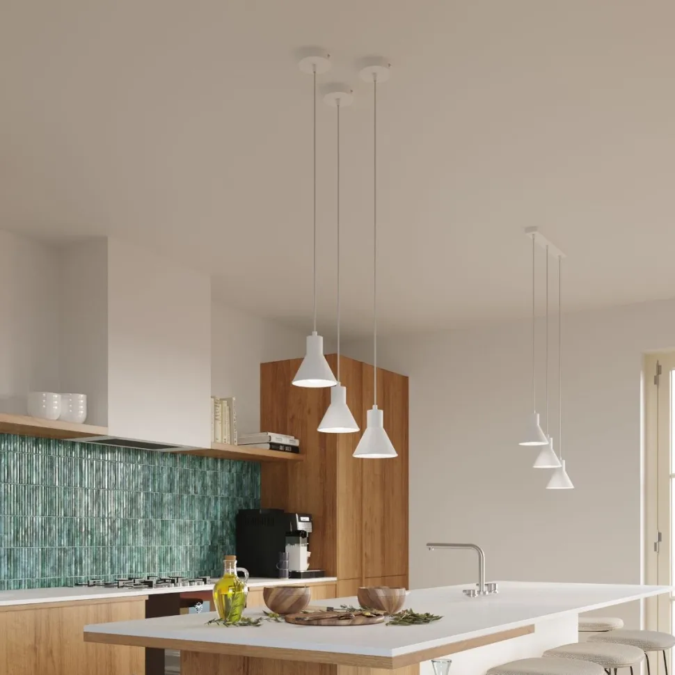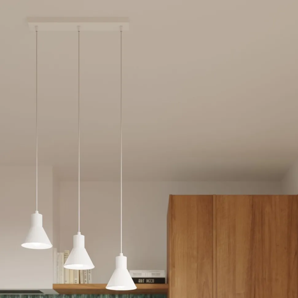 TALEJA to seria klasycznych lamp wiszących w wersji z 1 lub 3 kloszami. Łagodnie rozchylone, zapewniają dużo światła, które równomiernie otula swoim blaskiem przestrzeń. Uniwersalny design pozwala z sukcesem wykorzystać lampę w dowolnym wnętrzu. Dzięki prostemu kształtowi pozostawia ona przestrzeń dla innych elementów wystroju, chociaż w wersji z 3 kloszami na różnych wysokościach potrafi przyciągnąć zaciekawione spojrzenia. Jest dostępna w dwóch klasycznych kolorach: nieprzeniknionej czerni i nieskazitelnej bieli.