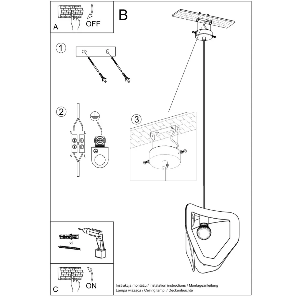 Lampa wisząca Tres posiada jedno źródło światła z oprawą E27 o max. mocy 60W.