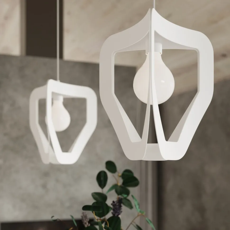 Wygląd czy funkcjonalność? Z wiszącą lampą Tres nie musisz wybierać. Zawiera w sobie wszystko, co powinno posiadać idealne oświetlenie sufitowe — piękny wygląd, praktyczną formę oraz źródło światła, które rozświetli każde wnętrze. Intensywny blask z lampy rozchodzi się równomiernie we wszystkich kierunkach, a unikalna, minimalistyczna forma doskonale podkreśla styl wnętrz nowoczesnych. Wybierz Tres w wersji kolorystycznej, która najlepiej dopełni Twoją aranżację. Oba warianty — zarówno delikatna biel jak i wyrazista czerń — będą świetnie wyglądać nad trójkątnym stolikiem kawowym lub w jadalni wypełnionej meblami o geometrycznych formach.
