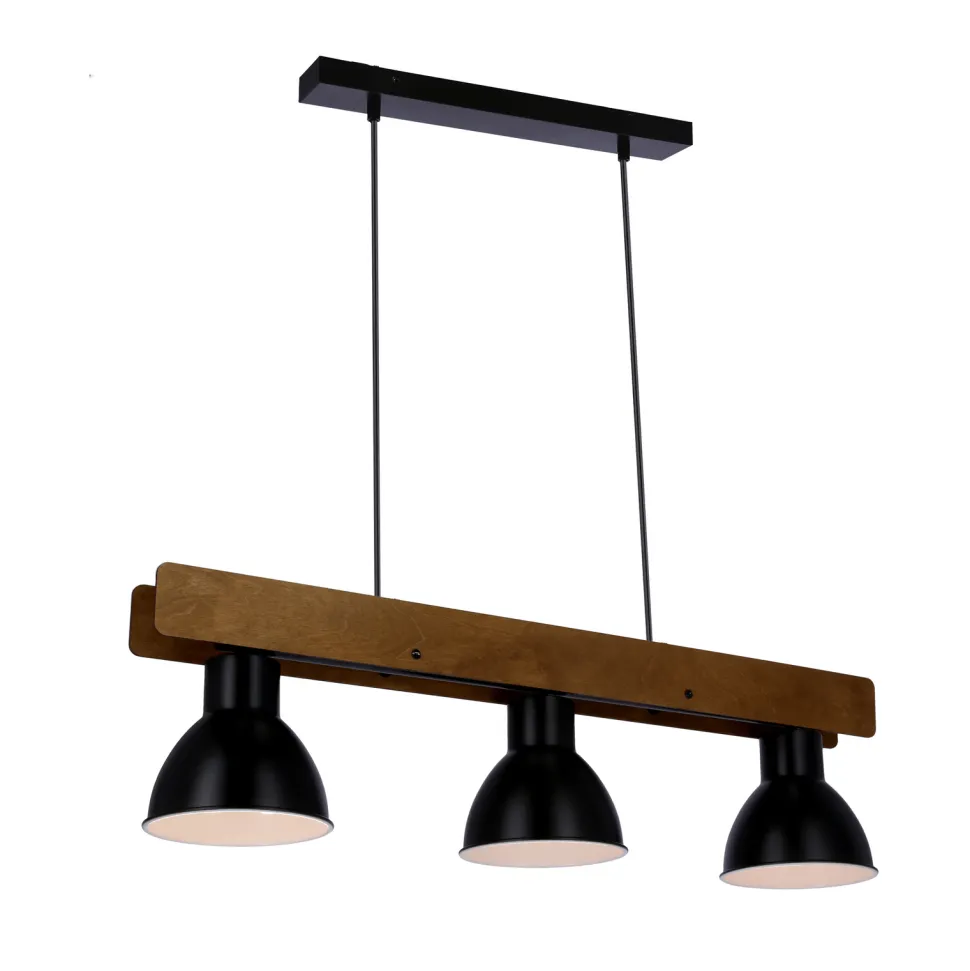 Poczuj atmosferę loftu w swoim domu z lampą wiszącą Vario. Wykonana z czarnego metalu i naturalnego drewna, łączy w sobie elegancję i surowość, co czyni ją idealnym dodatkiem do każdego wnętrza o minimalistycznym, loftowym lub industrialnym charakterze. Trzy metalowe klosze nie tylko dodają masywności konstrukcji, ale także skupiają światło w wybranych miejscach, co sprawia, że lampa doskonale sprawdzi się zarówno w salonie, kuchni, jadalni, jak i biurze czy garderobie.