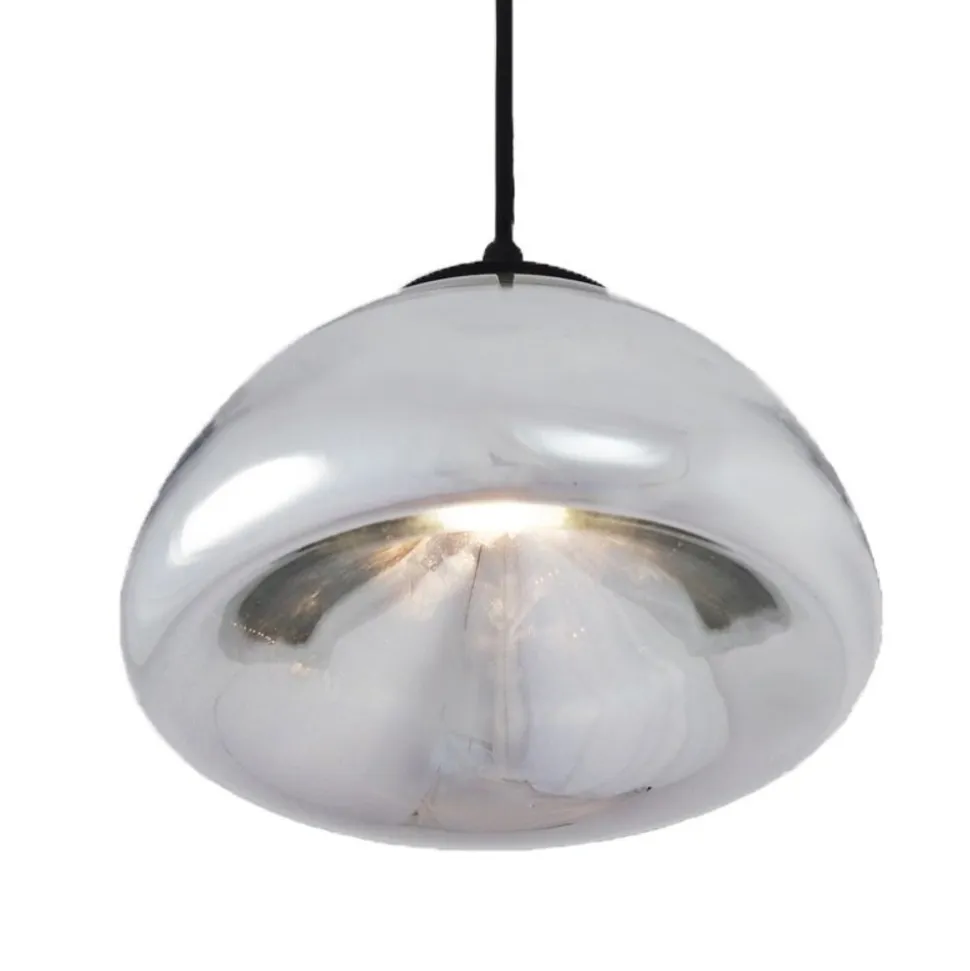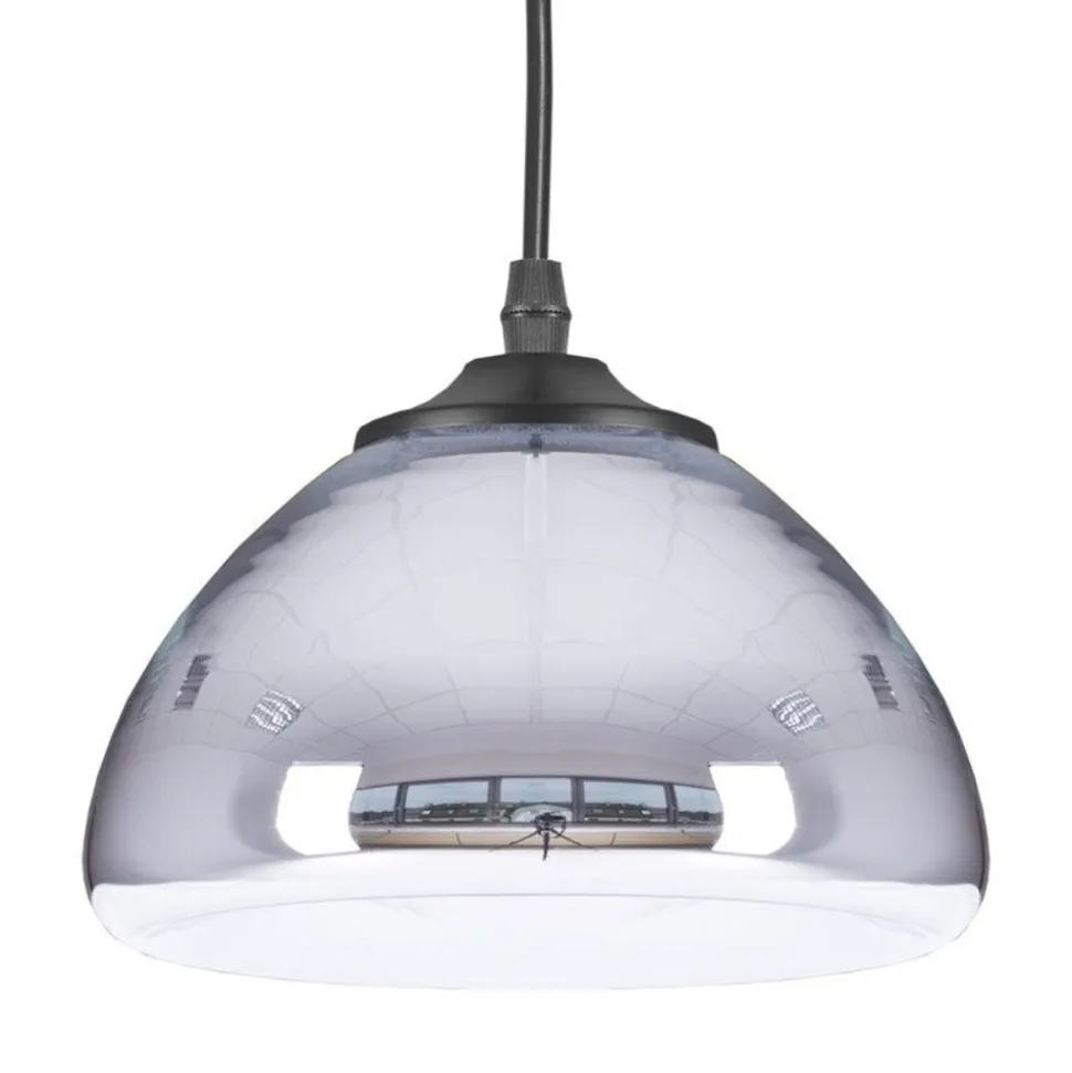 Klosz wykonany z polerowanego barwionego szkła nadającego lampie lustrzany połysk.