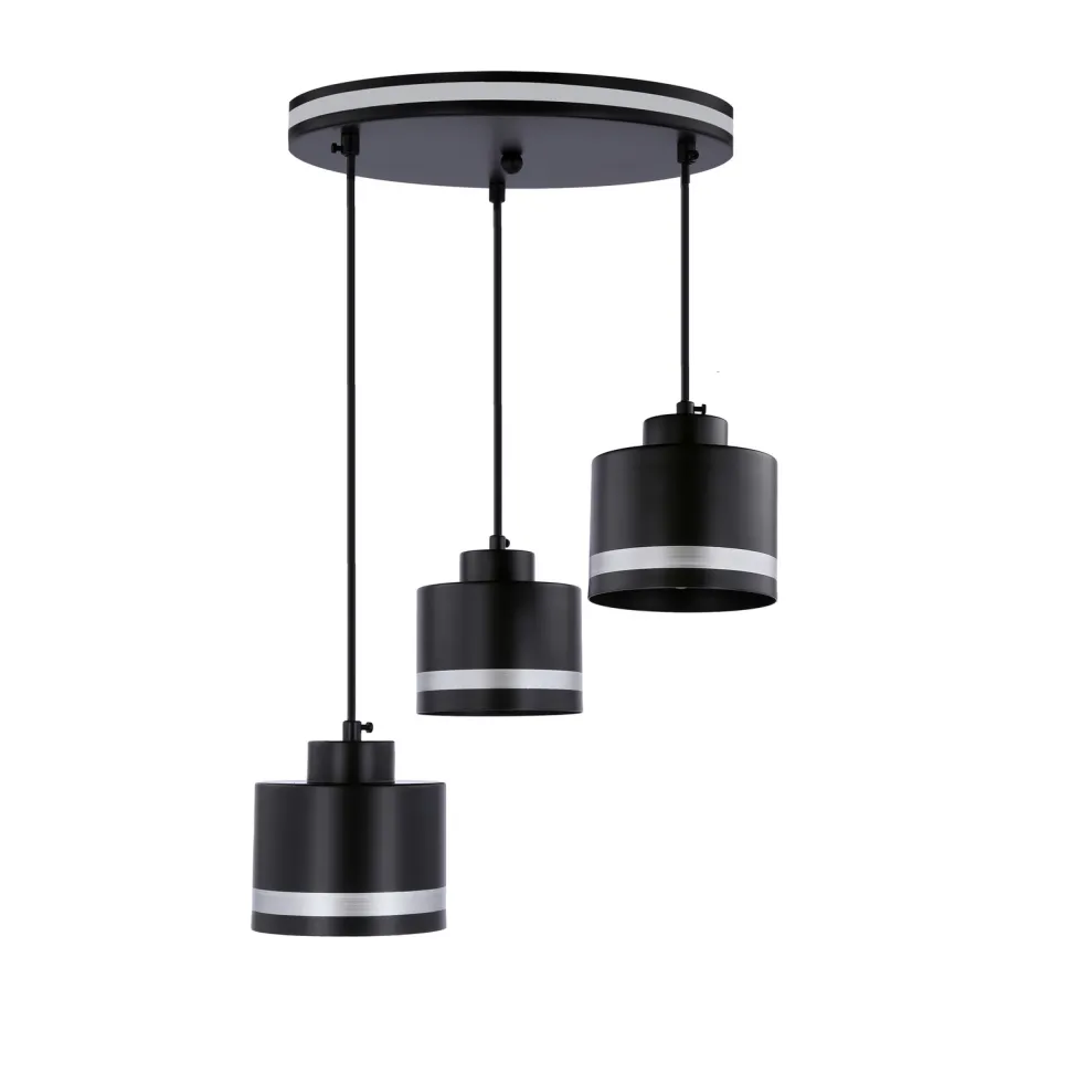 Prezentujemy Państwu lampę wiszącą Wama, która łączy w sobie elegancję i funkcjonalność. Wykonana z solidnego metalu, z trzema cylindrycznymi kloszami w modnym czarnym kolorze, jest znakomitym dodatkiem do każdego wnętrza. Co więcej, klosze są zawieszone na czarnych przewodach o różnej długości, co umożliwia regulację wysokości lampy. To sprawia, że doskonale sprawdzi się zarówno w wysokich, jak i niskich pomieszczeniach.