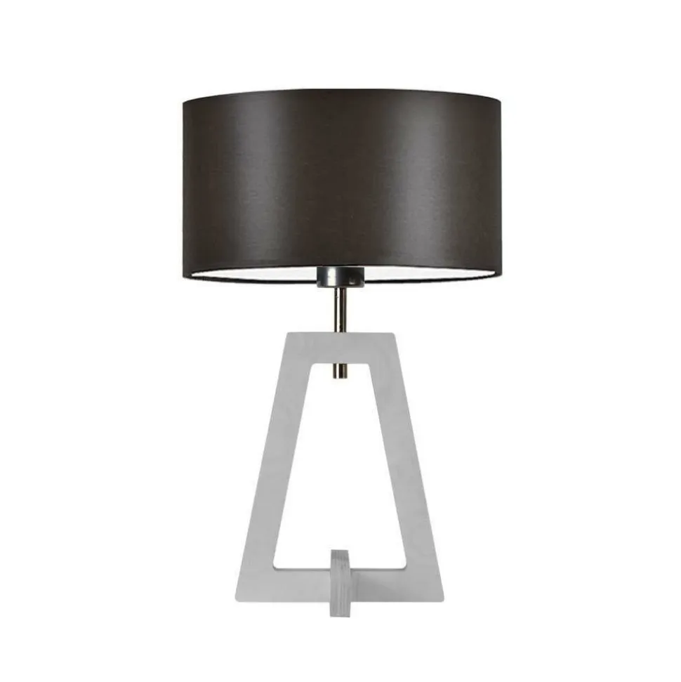 Lampka Cliowyróżnia się ciekawą konstrukcją, tworzoną przezpodstawę w kształcie trapezui tkaninowy abażur.