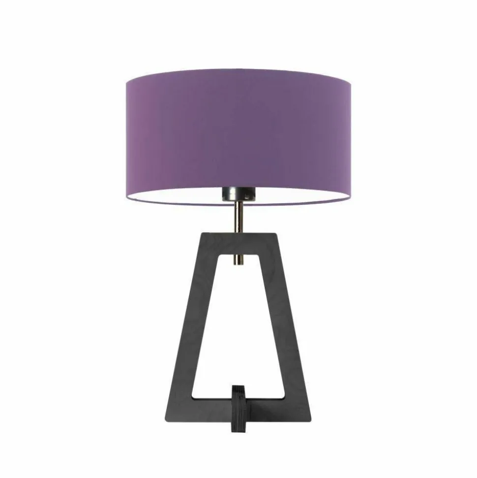 Lampka Clio wyróżnia się ciekawą konstrukcją, tworzoną przez podstawę w kształcie trapezu i tkaninowy abażur.