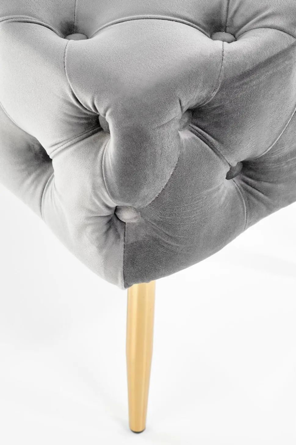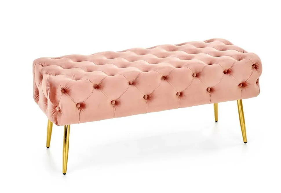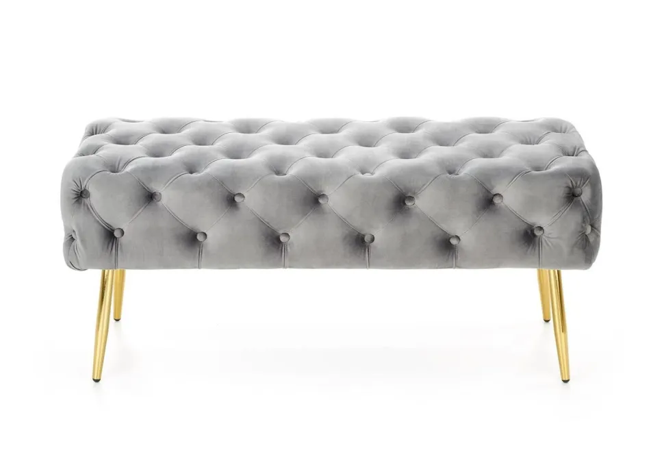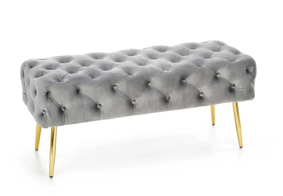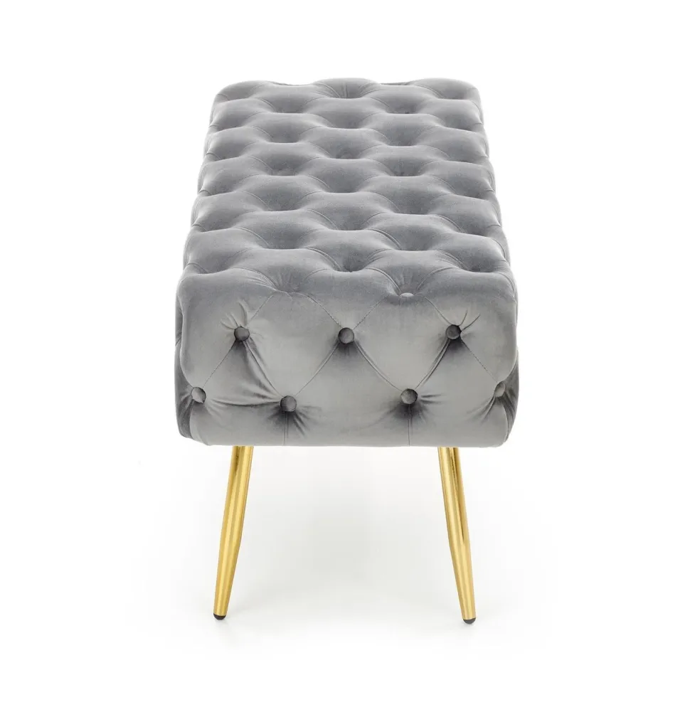 - Podstawa z czterema złotymi metalowymi nóżkami nadaje ławce elegancji i stabilności.