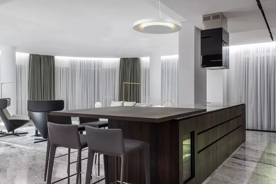 Ta futurystyczna lampa wisząca to prawdziwe dzieło sztuki! Jej minimalistyczny design w połączeniu z nowoczesnymi technologiami sprawia, że pasuje do każdego wnętrza — od industrialnych loftów po eleganckie apartamenty.