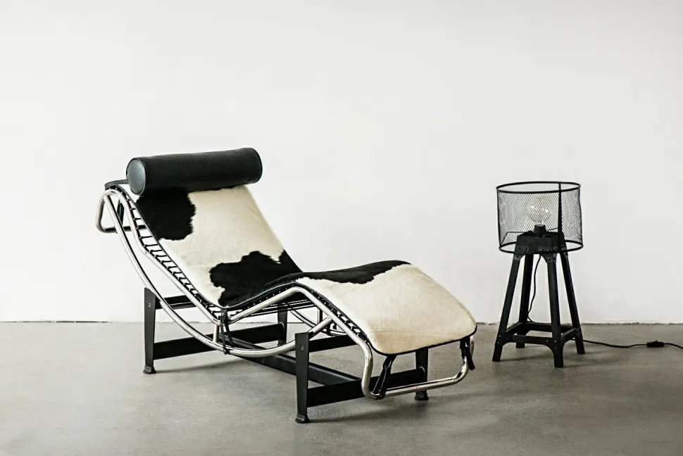LC4 to najbardziej znany projekt Le Cobusier. Powstał w 1928 roku. Baza na której opiera się leżanka jest czarna. Konstrukcja leżanki jest wykonana ze stali nierdzewnej, a materac ze skóry wyprawianej w różnych kolorach lub pony. Zagłówek zawsze z czarnej skóry. Istnieje możliwość wyboru pochylenia leżanki. Prezentowany produkt jest inspirowany projektem LC4 Chaise Lounge. UWAGA! Ze względu na różnorodność wybarwienia skór Pony zdjęcia proszę traktować poglądowo.