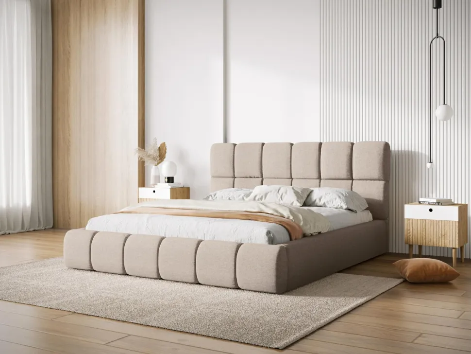 Beżowe łóżko Bellis – połączenie funkcjonalności i stylu glamour