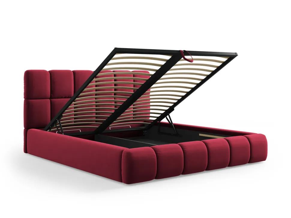 Łóżko Bellis Red Velvet to nie tylko miejsce do spania, ale również praktyczne rozwiązanie do przechowywania pościeli. Posiada pojemnik na pościel, który pomaga utrzymać porządek w sypialni. Dzięki temu łóżko jest nie tylko komfortowe, ale również funkcjonalne.