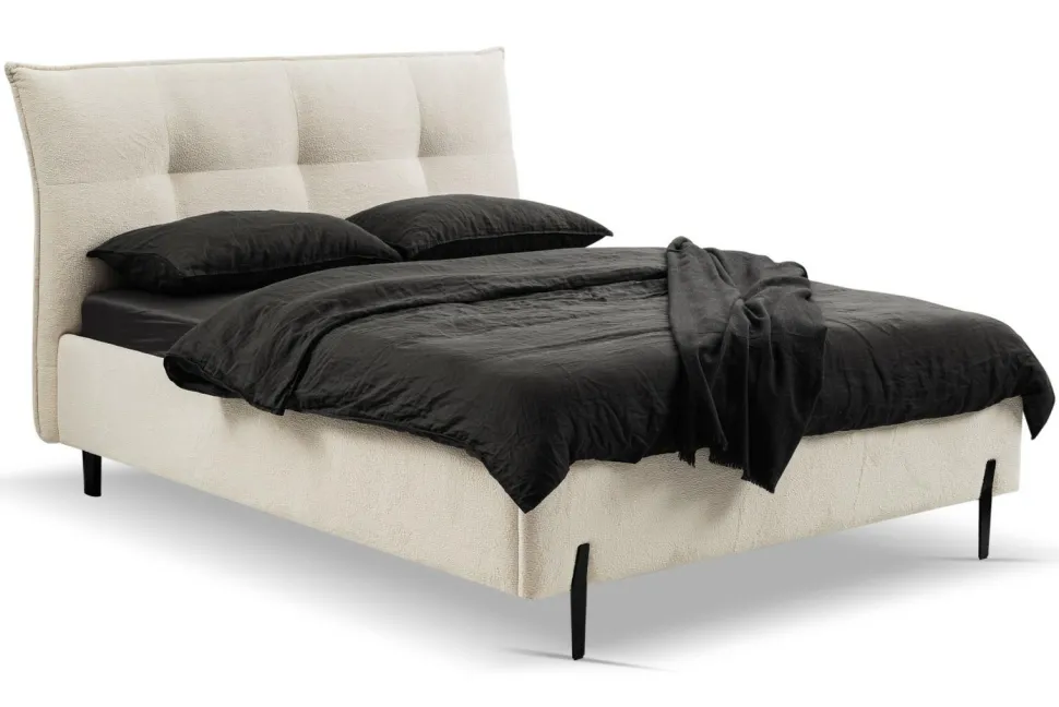 Intesi prezentuje stylowe i funkcjonalne łóżko Biscuit. Jest to połączenie elegancji i komfortu, które przemieni Twoją sypialnię w prawdziwe miejsce relaksu. Minimalistyczne metalowe nogi nadają meblowi lekkości, a pikowane tapicerowane wezgłowie dodaje mu przytulności. Łóżko wyposażone jest w stelaż unoszony do góry, który ukrywa pojemnik na pościel. Dzięki temu zyskujesz dodatkową przestrzeń do przechowywania.