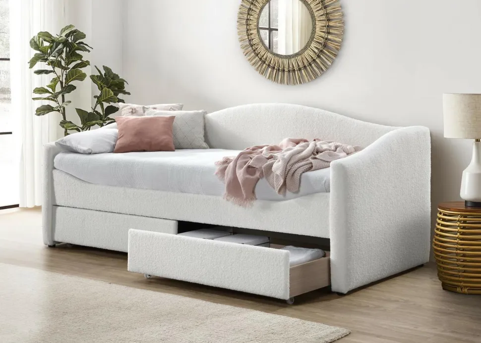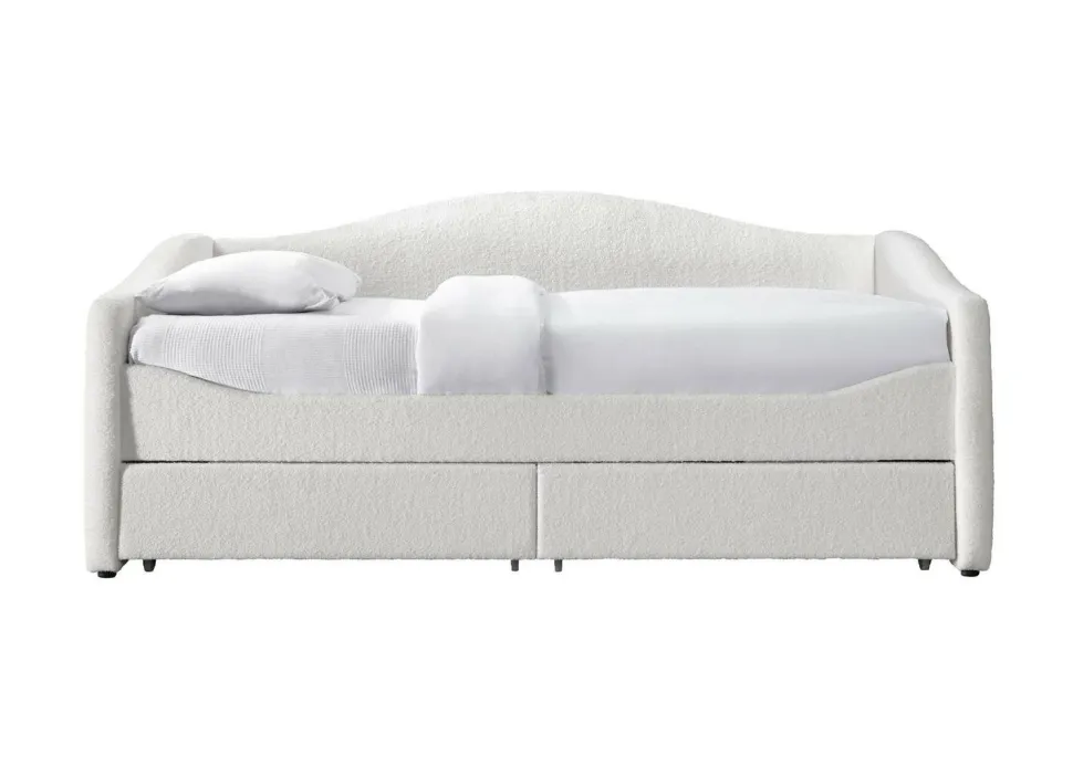 Łóżko Elbert o szerokości 90 cm w kolorze kremowym to stylowe i funkcjonalne rozwiązanie do każdego wnętrza, które łączy w sobie estetykę i wygodę. Wykonane z miękkiej, przyjemnej w dotyku tkaniny boucle, łóżko emanuje ciepłem i przytulnością, wprowadzając do sypialni spokojną, relaksującą atmosferę. Jego kremowy kolor doskonale wpisuje się w nowoczesne i klasyczne aranżacje, nadając wnętrzu elegancji i lekkości.