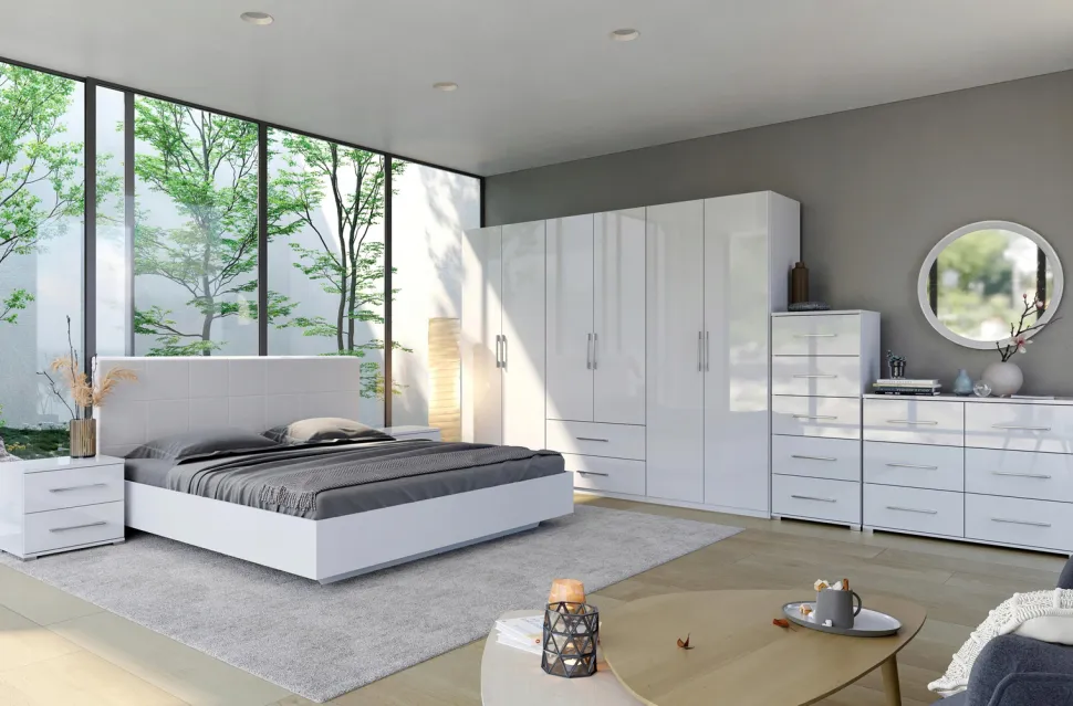 Zaprojektowane z myślą o nowoczesnych wnętrzach, łóżko to charakteryzuje się czystymi liniami i elegancją, które doskonale wpisują się w estetykę współczesnych przestrzeni. Rama łóżka, wykonana z wysokiego gatunku płyty laminowanej o grubości 16 mm, gwarantuje trwałość i stabilność, zapewniając solidne podparcie dla materac. Biały matowy zagłówek z ekoskóry dodaje całej konstrukcji wyrafinowanego charakteru.
