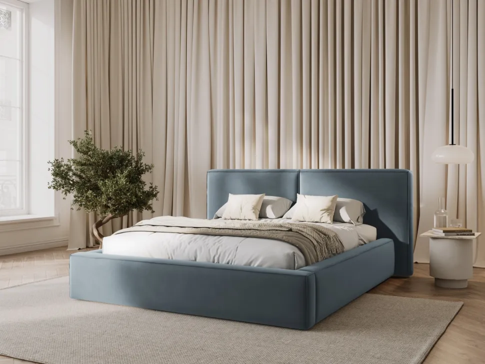 Łóżko Micadoni Home to propozycja dla osób ceniących sobie styl glamour. Jasnoniebieski kolor wezgłowia i podstawy dodaje mu uroku i sprawia, że staje się centrum uwagi w sypialni. To doskonałe rozwiązanie dla osób, które chcą wprowadzić do swojego wnętrza odrobinę luksusu i blasku.