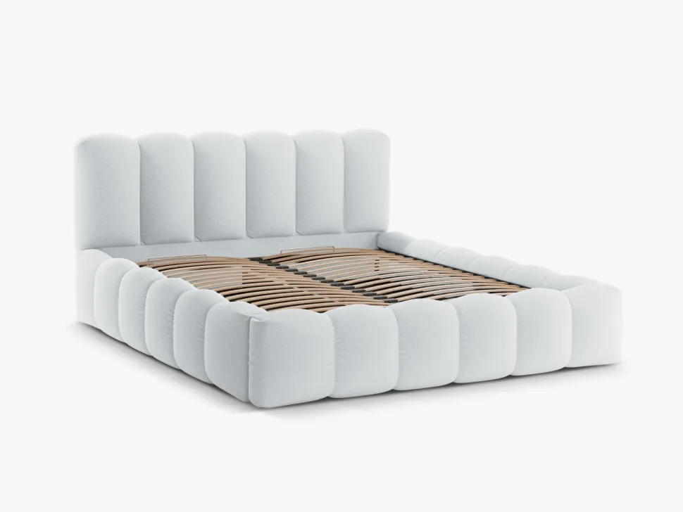 Łóżko Lupine Light Grey Structured Fabric 160×200 jest nie tylko stylowe, ale również funkcjonalne. Posiada pojemnik na pościel, który pozwoli Ci zaoszczędzić miejsce w szafie. Dzięki temu łóżko jest idealne do małych sypialni, gdzie liczy się każdy centymetr przestrzeni.