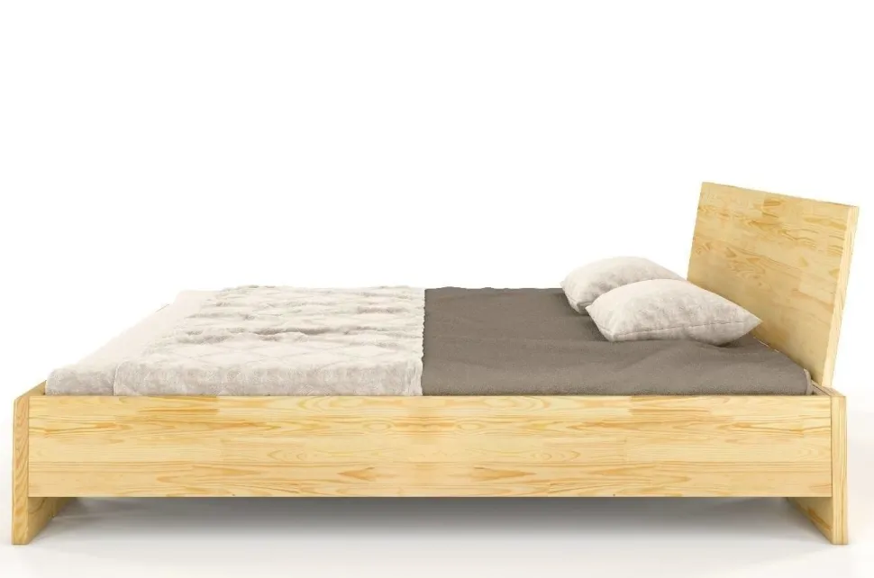 Największym atutem łóżka jest jego wysokość (38 cm do krawędzi ramy łózka), która pozwala na wygodne, bezproblemowe wstawanie bez najmniejszego wysiłku – jest doskonałym wyborem dla osób starszych oraz wygodna skrzynię na pościel. Jej dno wykonano z mocnej płyty HDF, zaś system ponoszenia pokrywy (stelaża) opiera się na gazowych siłownikach, które sprawiają, że podnosi się ją bez najmniejszego trudu. Mocne nogi nałożono na frontowy element łóżka, dzieląc je w pionie na dwie osobne deski z dodającą subtelności przerwą między nimi. Górną krawędź nóg zaokrąglono – to dodało lekkości. Materiał: lite drewno sosnowe. Zagłówek: drewno sosnowe. Sposób wykończenia drewna: dwukrotne szlifowanie + bejca + 2 warstwy lakieru. Kolor drewna: do wyboru ze wzornika. Drewno łączone na „mikrowczepy” – dzięki temu pozbawione jest ono skaz i sęków po widocznej stronie.