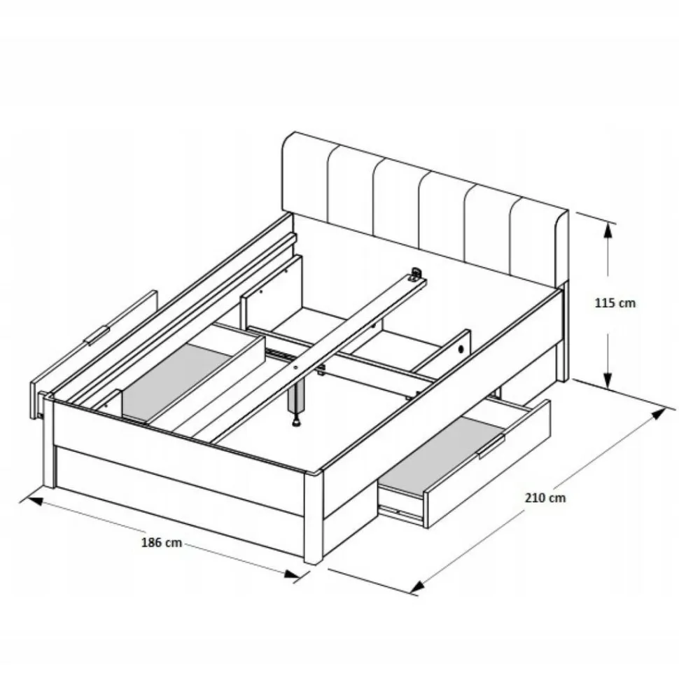 Wykonane z wysokiej jakości materiałów, Łóżko Tissa zapewnia nie tylko estetyczny wygląd, ale także solidność i trwałość na lata.Konstrukcja łóżka jest bardzo mocna i stabilna, co gwarantuje spokojny sen i komfort użytkowania.Zagłówek wykonany ze skóry ekologicznej dodaje elegancji i wyrafinowaniacałej kompozycji, tworząc idealne miejsce do relaksu i odpoczynku po całym dniu. Dodatkowo, wewnętrzne szuflady pozwalają na optymalne wykorzystanie przestrzeni, umożliwiając przechowywanie pościeli i innych niezbędnych rzeczy.Zalecane wymiary stelaża (180×200 cm) i materaca (wysokość minimum 15 cm)zapewniają optymalny komfort snu, a wysoka jakość wykonania gwarantuje satysfakcję z zakupu na długie lata. Łóżko jest elementem kolekcji mebli Tissa, dzięki czemu możesz stworzyć spójne wnętrze!