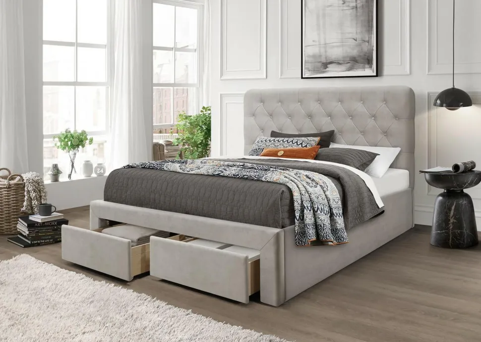 Beżowy kolor łóżka Vesey Velvet 160 dodaje mu elegancji i sprawia, że pasuje do każdego wnętrza. Tapicerka wykonana z tkaniny welwet jest nie tylko przyjemna w dotyku, ale także łatwa do czyszczenia. Dzięki temu łóżko będzie wyglądało jak nowe przez długie lata.