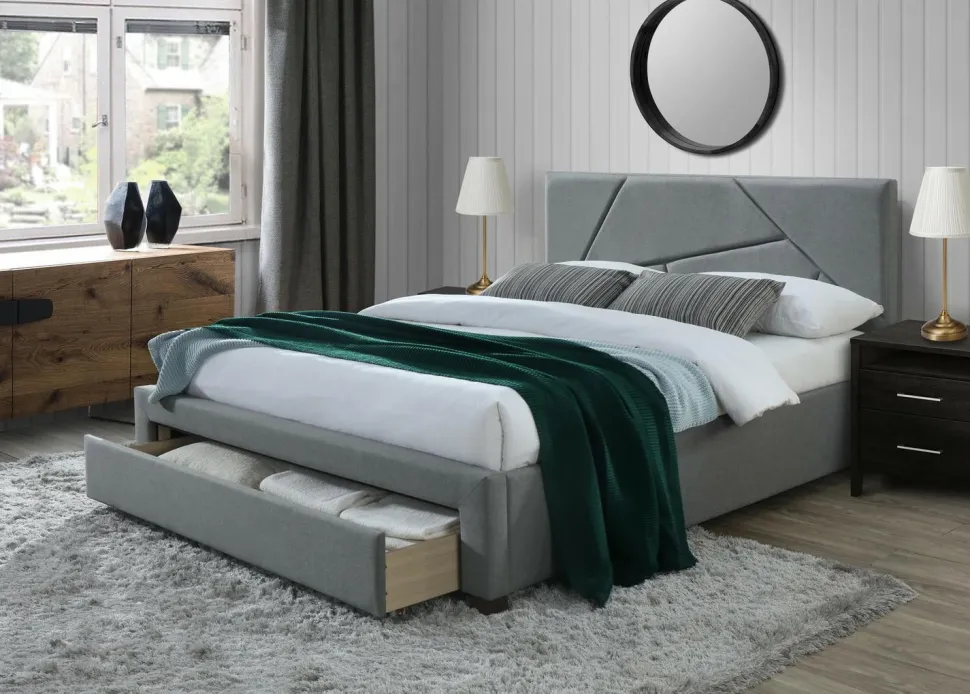 - Łóżko wykonane z wysokiej jakości materiałów, takich jak tkanina i drewno lite, jest nie tylko wytrzymałe, ale również estetyczne i wpisuje się w nowoczesne i eleganckie wnętrza