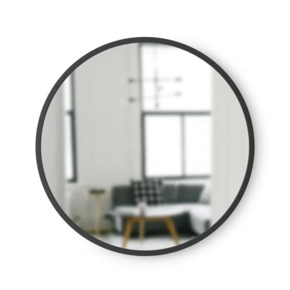 Lustra to świetny pomysł zwłaszcza dla niewielkich wnętrz. Pełnią w nich nie tylko funkcję dekoracyjną, ale także optycznie powiększają przestrzeń.Lustro Hubzdecydowanie wyróżnia się na tle innych.Okrągłatafla szkłaotoczona jest ramką w kolorze czarnym. Dodatkowo materiał zastosowany na brzegach to guma, co znacząco wydłuża jego trwałość.Zamontowane z tyłu lustrahaczyki pozwalają powiesić je na ścianie.