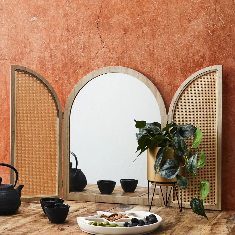 Styl boho i nowoczesny łączą się w tym wyjątkowym produkcie, dodając wyjątkowego uroku do każdego pomieszczenia. Dzięki swoim naturalnym i lustrzanym kolorom, lustro Bali zamykane naturalne od Intesi jest doskonałym dodatkiem do garderoby, pokoju młodzieżowego, przedpokoju, salonu czy sypialni. Możliwość zamknięcia lustra dodaje mu dodatkowej funkcjonalności, umożliwiając przechowywanie małych przedmiotów za nim.
