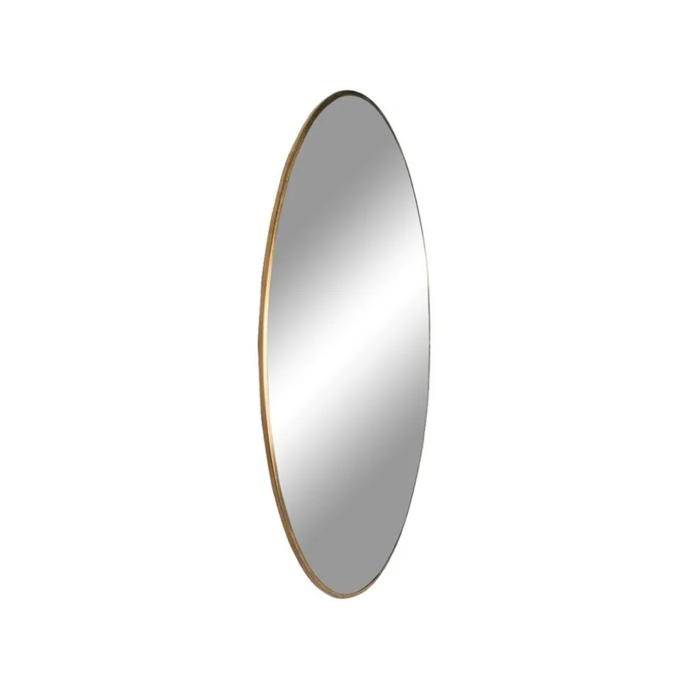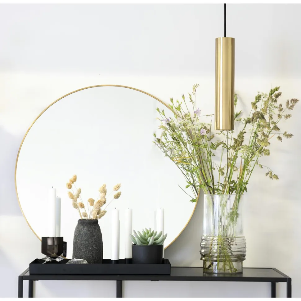 Okrągłe lustro Jerseyze złotą ramką to ponadczasowy dodatek do nowoczesnych wnętrz w stylu glamour czy art-deco. Jest to świetny sposób na uzupełnienie pustej ściany w mieszkaniu. Lustro o szerokości 60 cm sprawdzi się przede wszystkim w przedpokoju, jednak znajdzie też swoje miejsce w sypialni czy salonie. Dzięki sporemu zwierciadłu nie tylko obejrzymy się w całej krasie, ale również tak duże lustro odbija sporo światła, rozświetlając pomieszczenie. Ramka Jersey wykonana została z metalu. Produkt posiada miejsce specjalny zaczep do zamontowania go na ścianie.