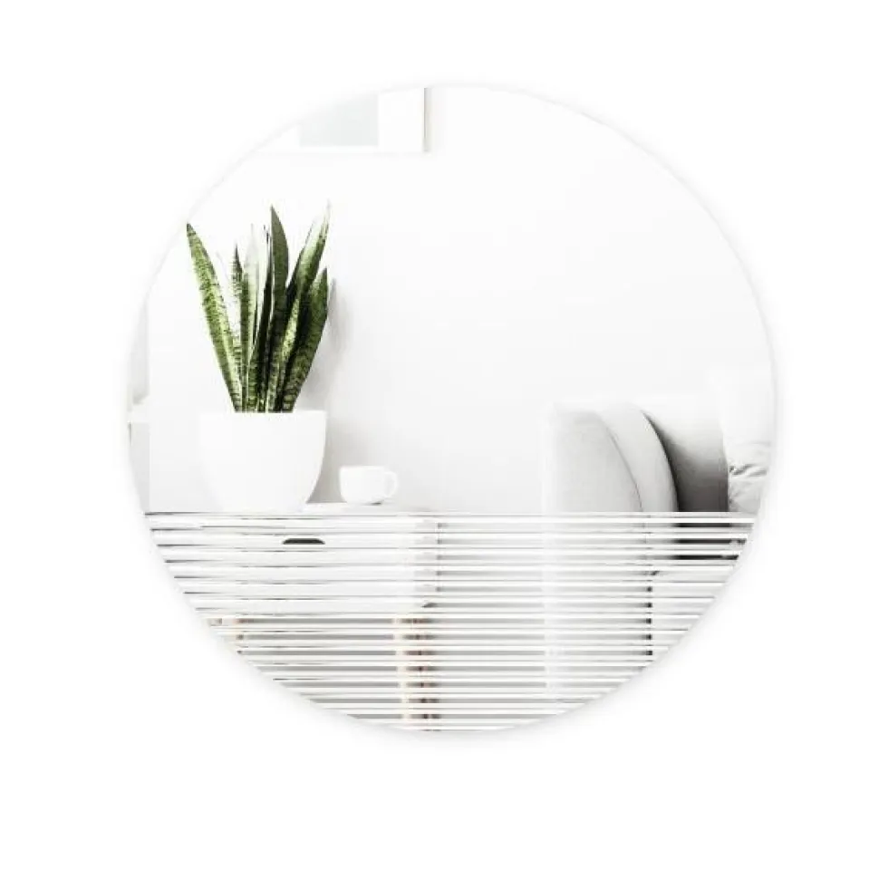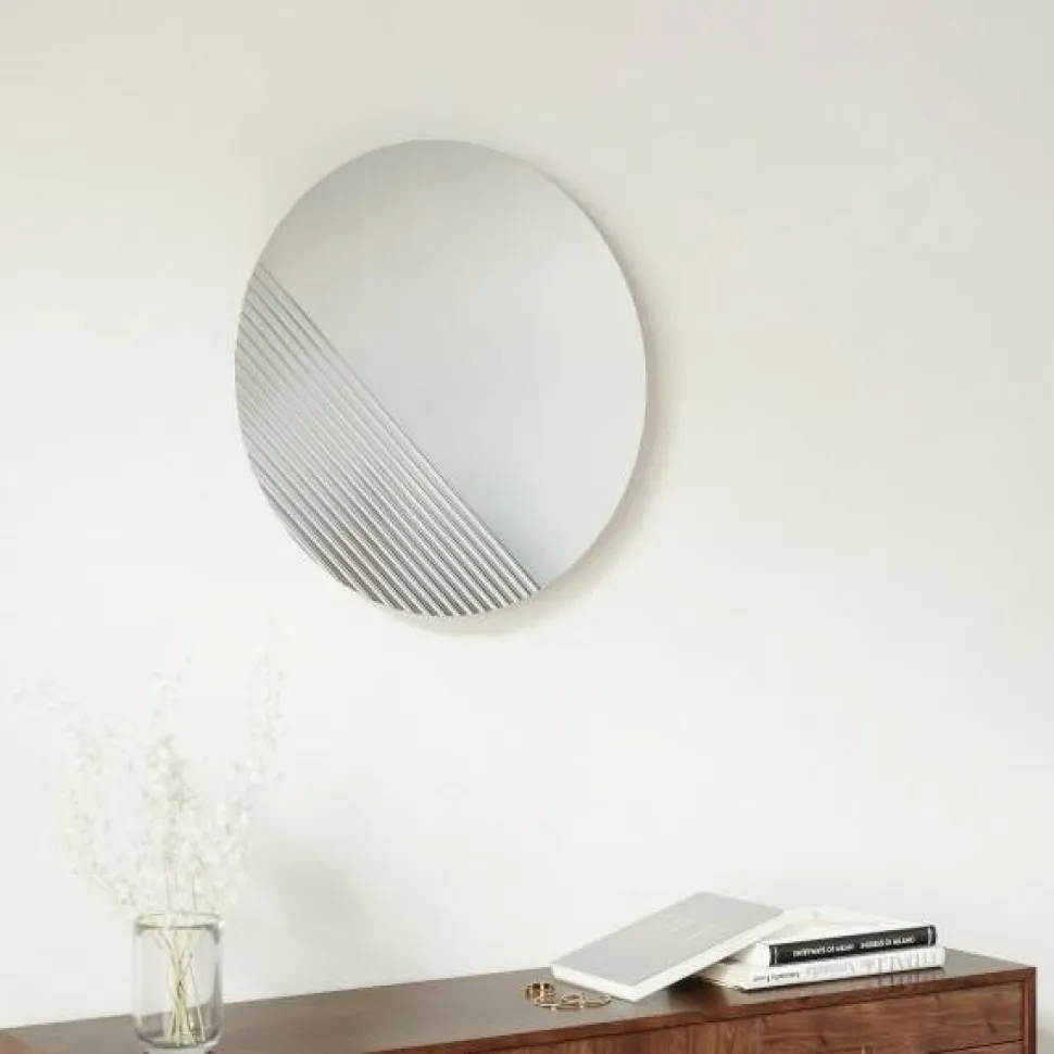Ridge to dekoracyjne lustro ścienne z wyjątkowymi detalami kalenicowymi. Ridge posiada prążkowany detal, który zajmuje 1/4 lustra. Oryginalny projekt Ridge ma starannie wypolerowane krawędzie, które natychmiast rozjaśnią Twoją przestrzeń. Dodaj tę dekorację ścienną do każdego pomieszczenia, aby uzyskać przyciągające wzrok i dynamiczne wykończenie. Lustro można mocować do ściany w różnych kierunkach w zależności od efektu wizualnego, jaki chcemy uzyskać za pomocą frezów.