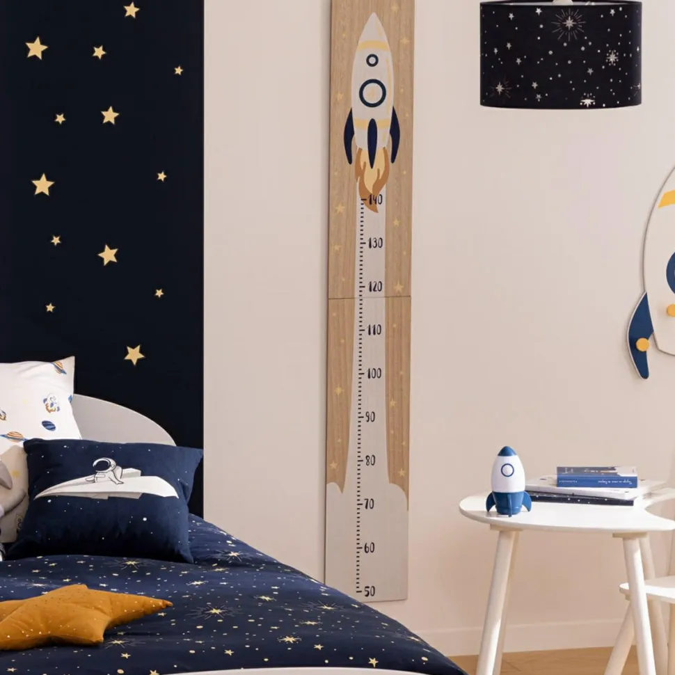Stylowa i funkcjonalna miarka wzrostu Rakieta drewniana marki Atmosphera to doskonałe połączenie praktyczności i estetyki. Wykonana z wysokiej jakości płyty pilśniowej, zapewnia trwałość i wytrzymałość na lata. Zabawny motyw rakiety zachęci maluchy do regularnego mierzenia swojego wzrostu, a jednocześnie stanie się ciekawym elementem dekoracyjnym każdego pokoju dziecięcego. Dodatkowo, miarka jest wyposażona w dwa haczyki, co ułatwia jej montaż na ścianie.