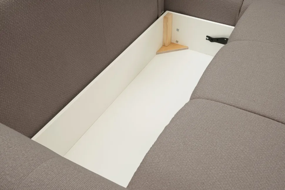 Mebel wykonany jest z wysokiej jakości materiałów – drewna sosnowego, płyty wiórowej, sklejki i pianki tapicerskiej. Dzięki temu narożnik Bode jest nie tylko estetyczny, ale też wytrzymały. Warto zwrócić uwagę na jego funkcjonalność. Narożnik posiada powierzchnię spania o wymiarach 145x212cm, co sprawia, że doskonale sprawdzi się jako dodatkowe miejsce do spania. Dodatkowo, mebel posiada pojemnik na pościel o wymiarach 118x67x18,5cm, co z pewnością ułatwi przechowywanie.