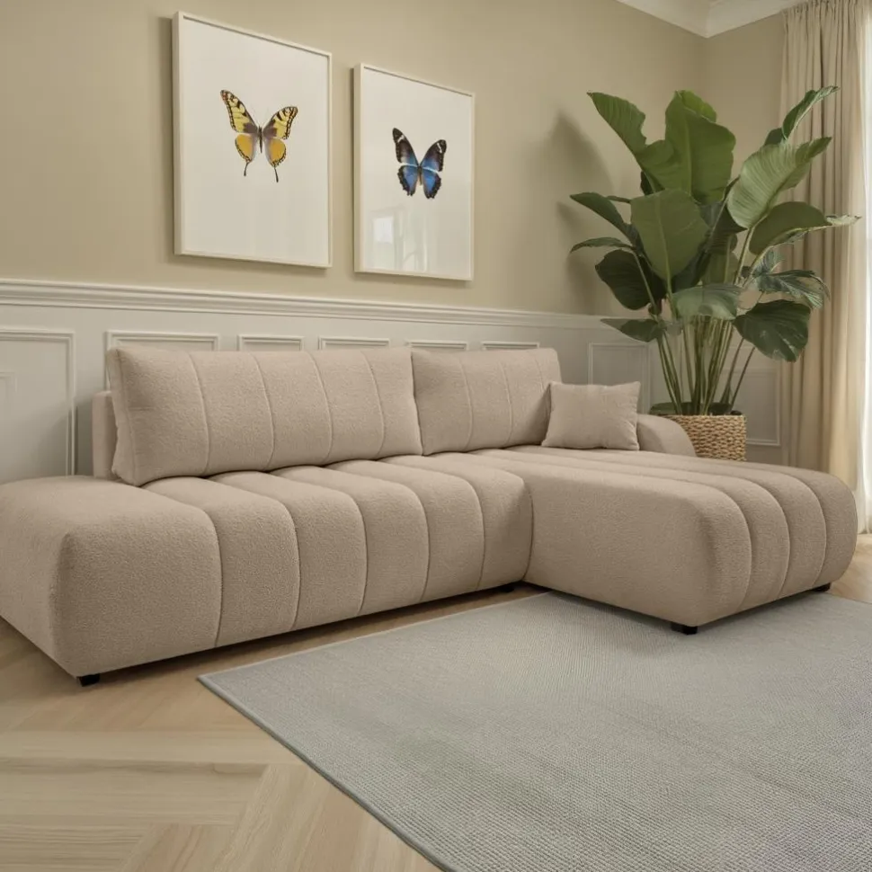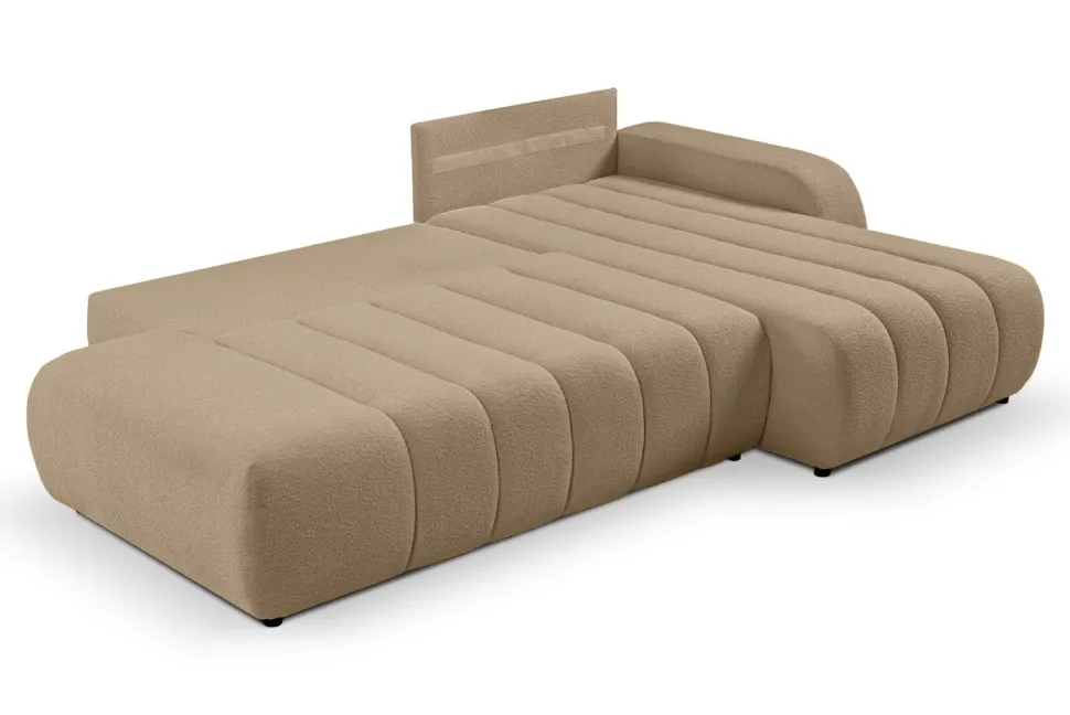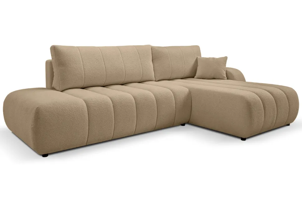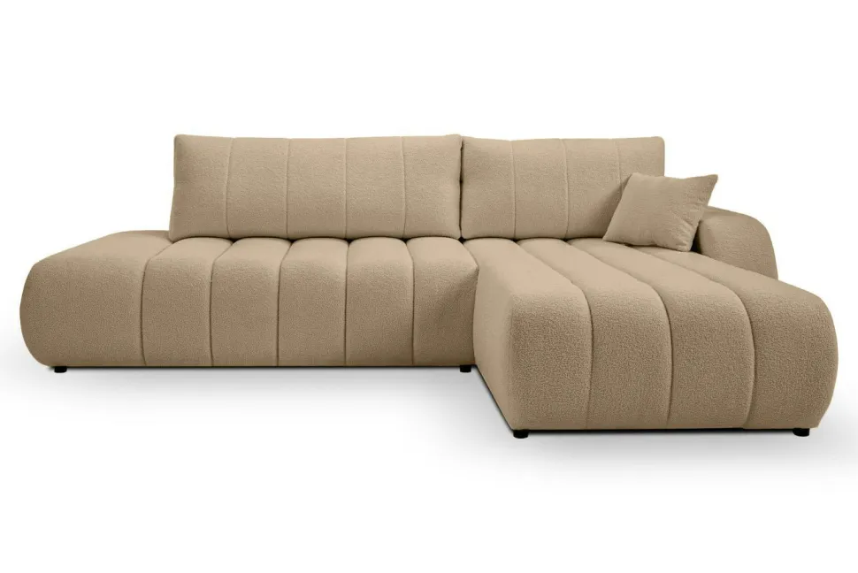 Narożnik Hobro z funkcją spania prawy beżowy ciemny Lambi 6 – idealny dla osób ceniących komfort i funkcjonalność