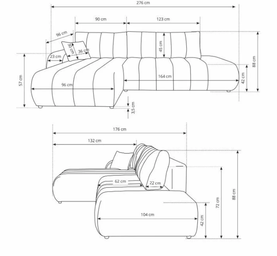 - Luźne poduchy dodają miękkości i komfortu podczas opierania się na narożniku, a system rozkładania DL gwarantuje łatwość obsługi.
