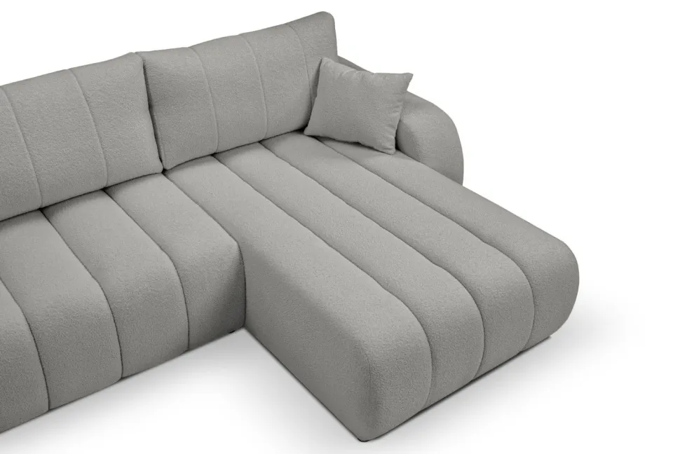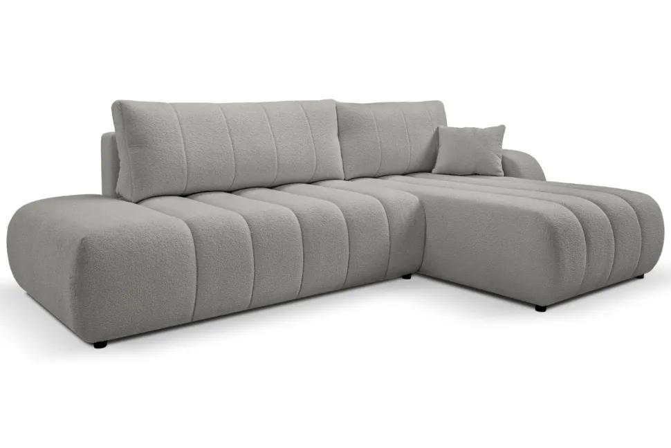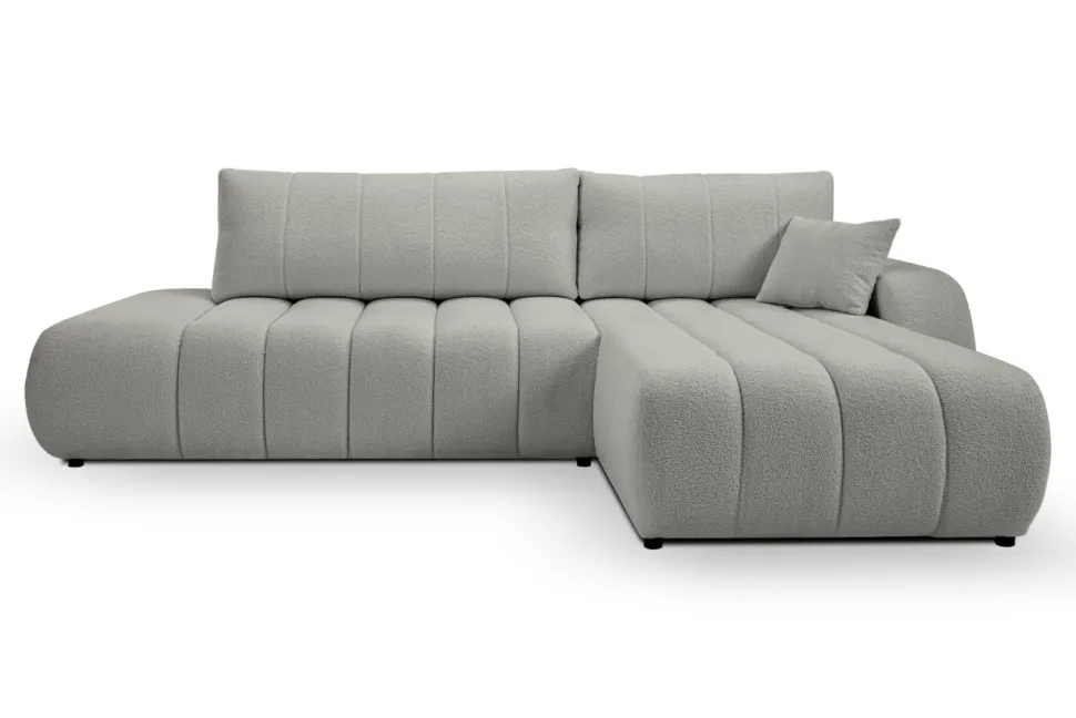 Narożnik Hobro posiada nie tylko funkcję spania, ale również pojemnik na pościel, co jest niezwykle praktyczne i pozwala zaoszczędzić miejsce w domu. Jego szary kolor jest uniwersalny i dobrze komponuje się z różnymi stylami wnętrz, od skandynawskiego, przez boho, aż po nowoczesny lub klasyczny.