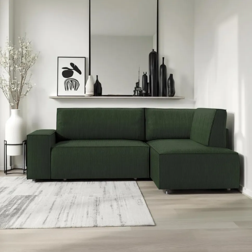 - Narożnik wyposażony jest w spory pojemnik na pościel, co dodatkowo zwiększa jego funkcjonalność.